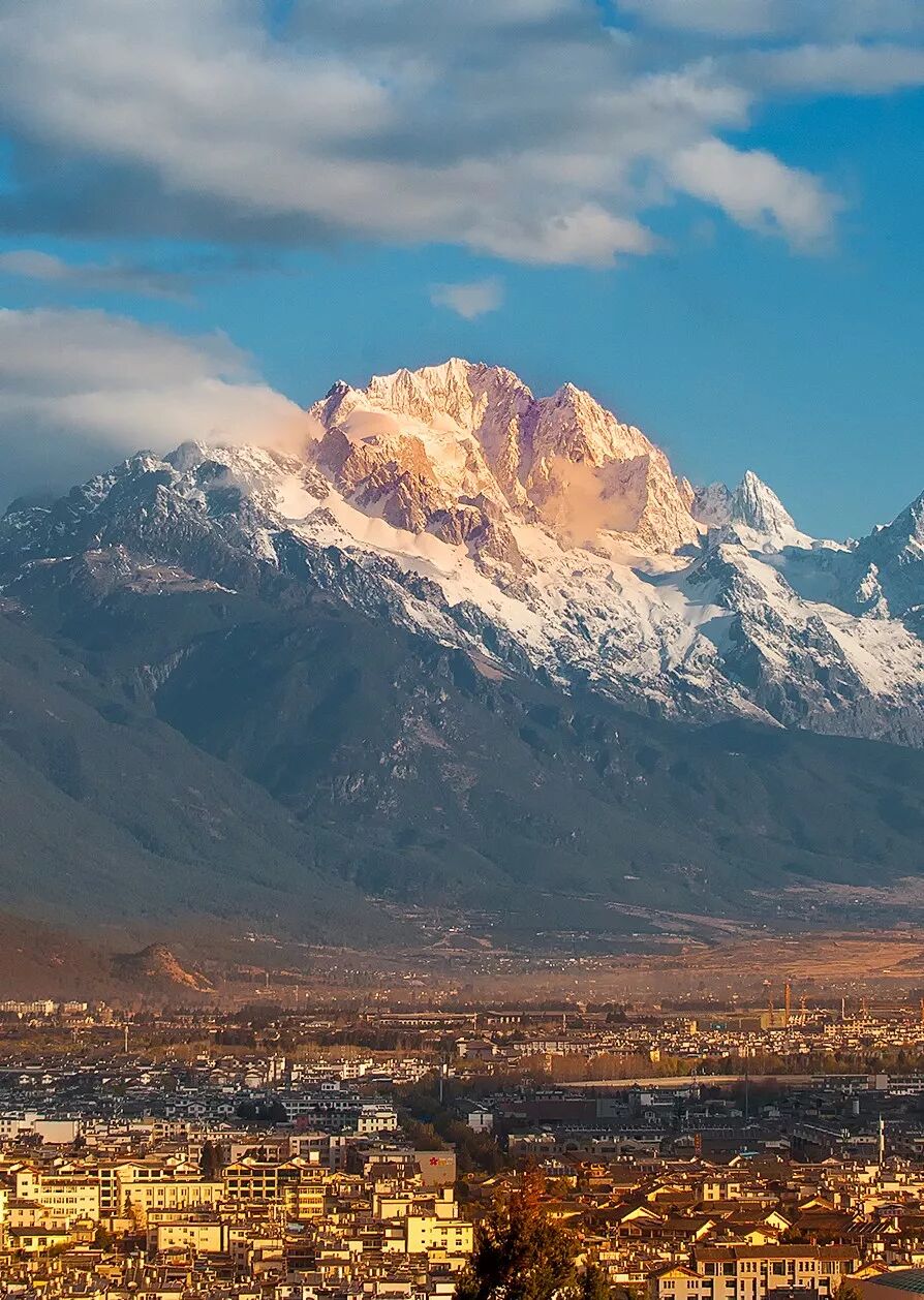 (玉龙雪山和山下的丽江古城,摄影师@杜春森)