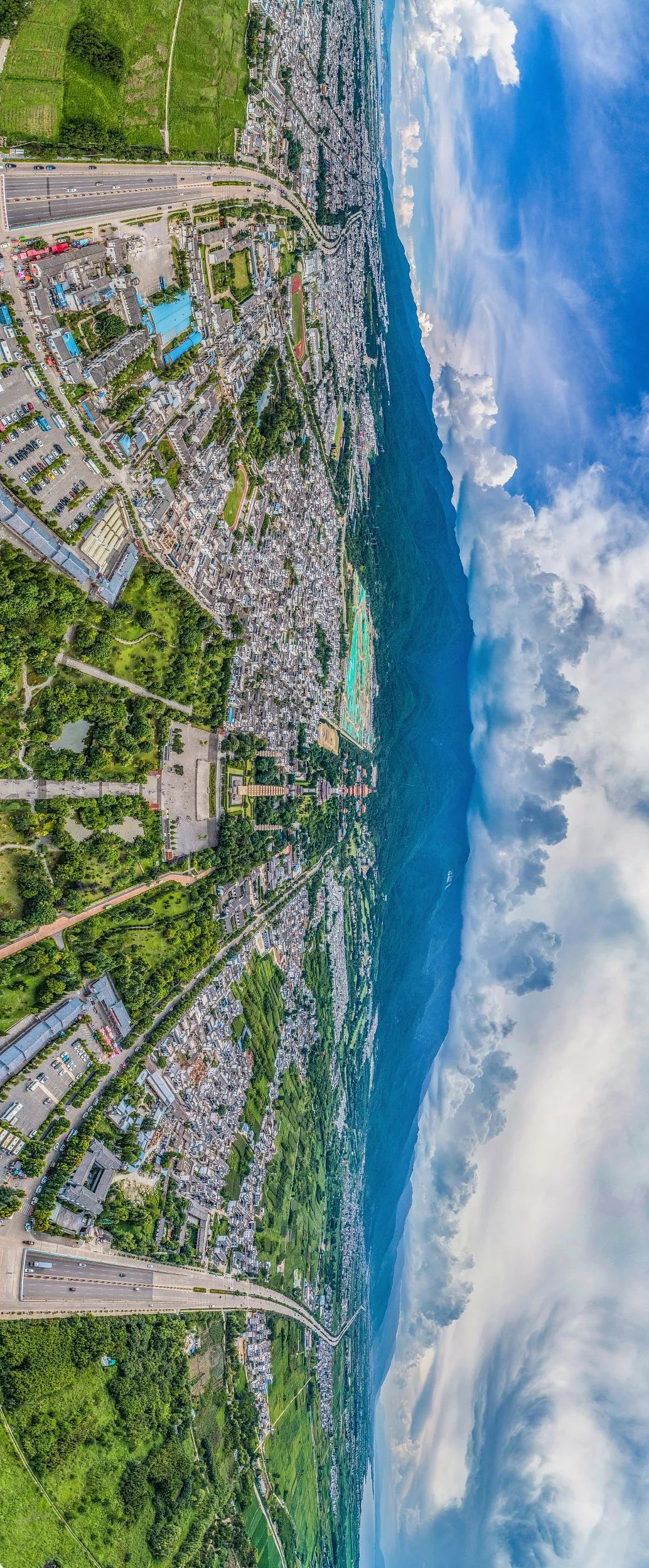 (请横屏观看,苍山下的大理古城及周围建筑,现存古城主要是明清时期的遗存,摄影师@姜轲)