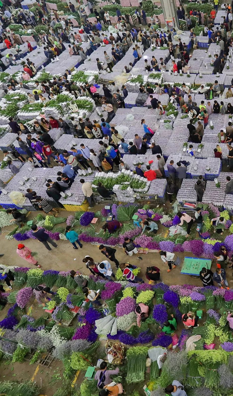 (繁忙的昆明斗南花市,为亚洲最大的花卉交易市场,图片源自@VCG)