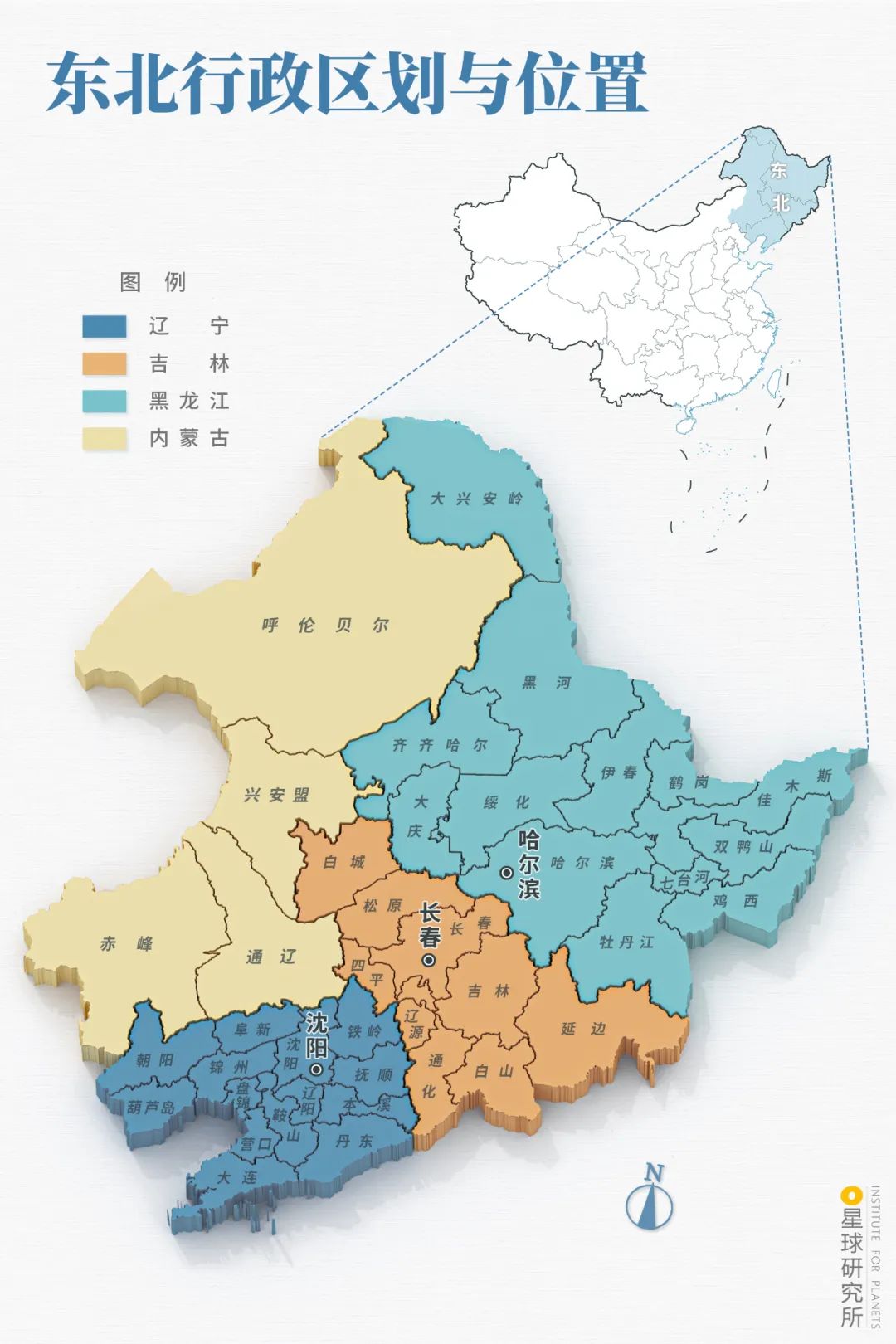 (东北行政区划与位置,制图@陈景逸/星球研究所)
