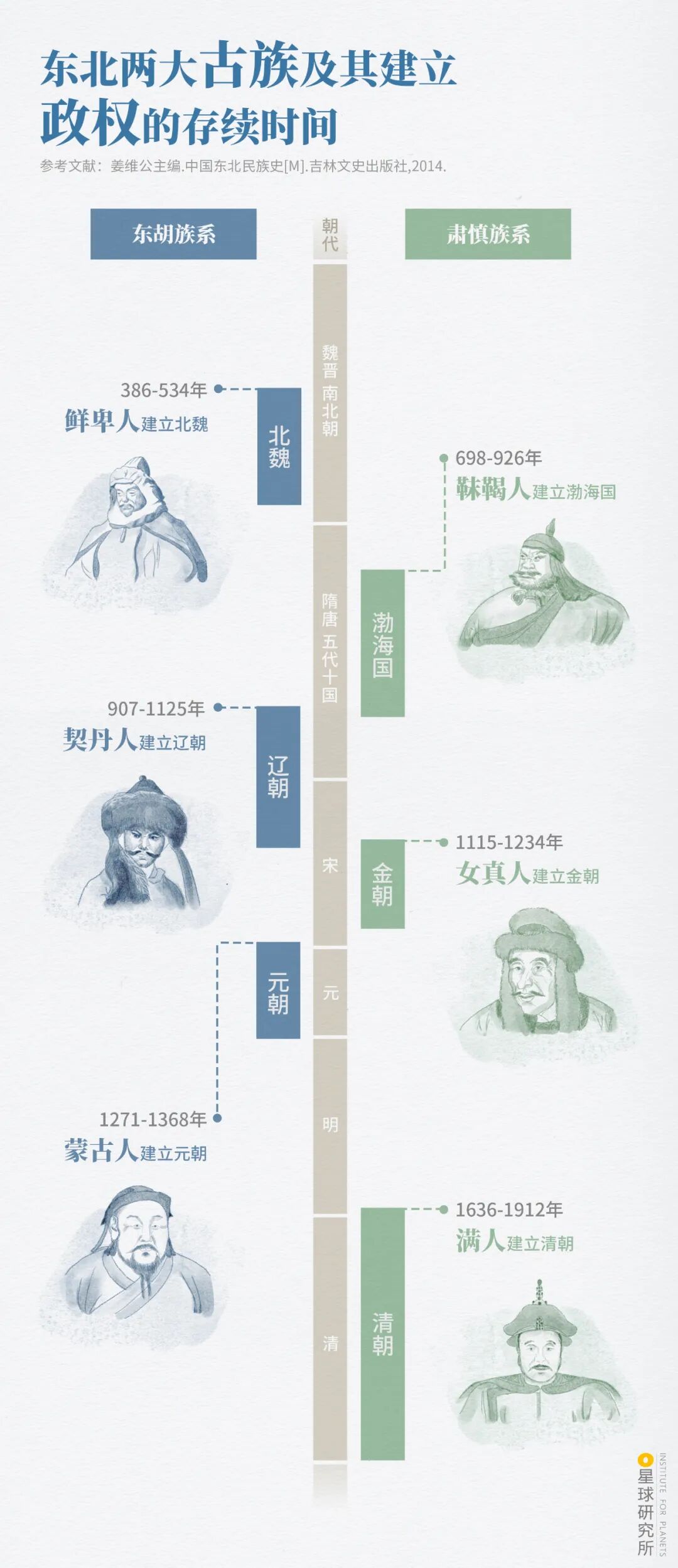 注:本文在东北古代族系的划分上采用姜维公主编《中国东北民族史》一书中的三分说,即东北古族可以划分为汉族、东胡、肃慎三大族系,认为秽貘族系为混血族系,不是独立的族系。