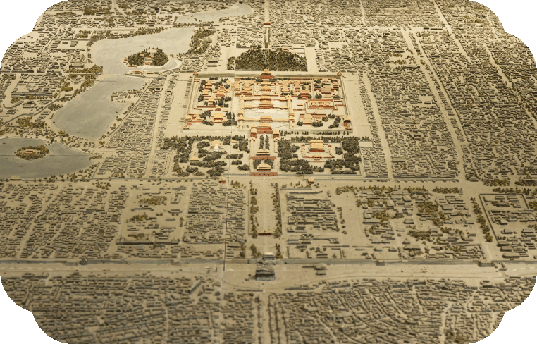 “匠人营国,方九里,旁三门。国中九经九纬,经涂九轨,左祖右社,面朝后市,市朝一夫。”——《周礼·考工记》 中国古代许多大城市特别是政治性城市都是按照这种理论修建的,其中典型案例是唐代长安城和北京城(元明清),清晰的街坊结构和笔直的街道以及城墙和城门无不反映了“礼”的思想。