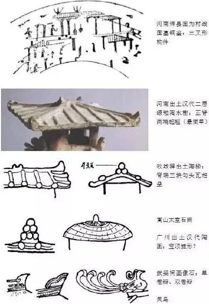 虽然一般将吻兽或鸱吻的出现追溯至战国的《山海经》,但从汉代的画像砖和陶楼中可以看到,当时建筑的瓦面之间已经有了朴素的“缝合”装置,但并没有出现后来常见的异兽形象,早期还是简单大气的。