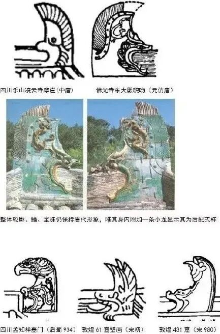 龙的形象逐步出现在唐代的鸱吻中,可能是受到当时游牧部落的影响。在契丹部落灭掉渤海国后,几乎全盘接受了渤海国的文化和建筑形制。