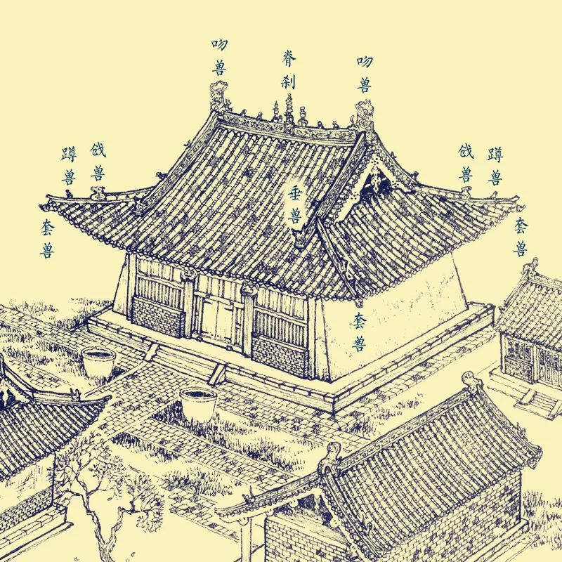 总之,汉代之后,在朴素、实用的屋脊上出现了装饰用的吻兽,随着不同地域间的文化交流,吻兽的形状也随着历史而变化。明清时期,吻兽作为等级制度的体现最终定型,在现今我们看到的吻兽大部分是明清时期的产物。