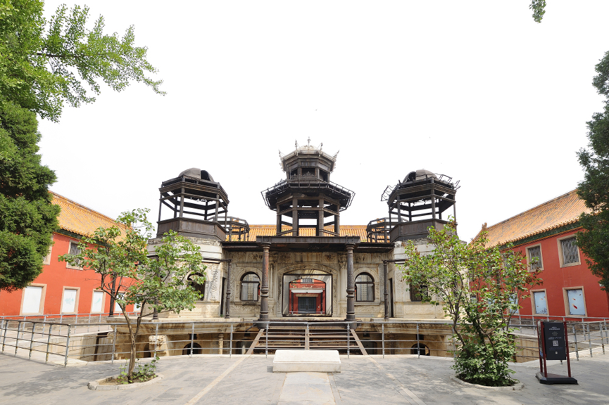 走过一座座传统古建筑中,来到东六宫之一的延禧宫,便发现一座和周围宫殿不一样的西洋建筑,建筑下面四周可以看出曾经四面环水,整体能看出建筑的主体样子,但尚未盖好的部分又让人疑惑这是一座清代的“烂尾楼”吗?