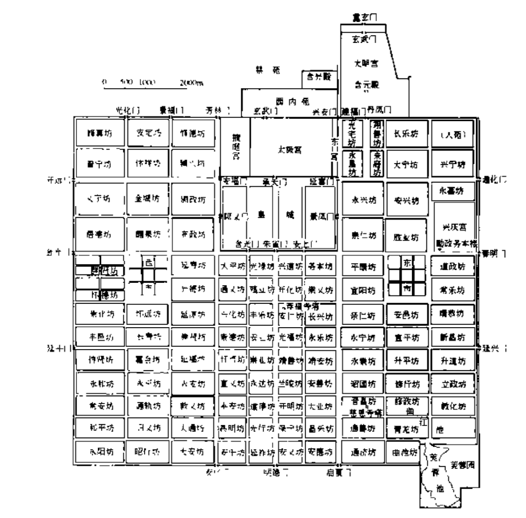 唐长安城复原图(图源《中国古代建筑历史图说》,仅用于学习交流)