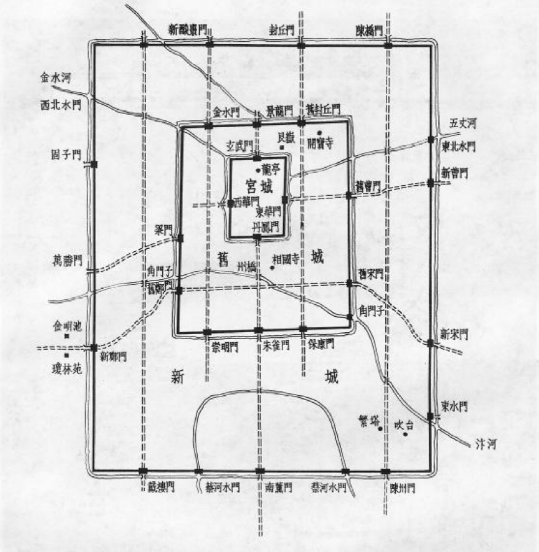 北宋东京城复原图(图源《中国古代建筑史》,仅用于学习交流)