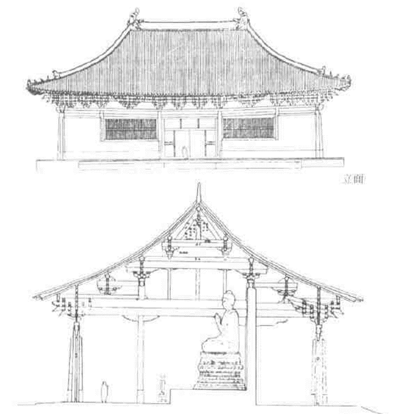 三圣殿立面和横剖图(图源《中国古代建筑历史图说》,仅用于学习交流)