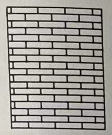 平砖顺砌错缝:这种砌法,开始于战国时的冶铁遗址浇铸槽壁及西汉条砖基壁。均为单砖墙,墙体较薄,稳定性差,不能过高,能承受一定的力,许多条砖汉墓都用这种形式的砖壁。有些为了加强墙身的稳定,采用两道单砖墙体相并的砌法,但其实这种砌法并没有多大的作用。