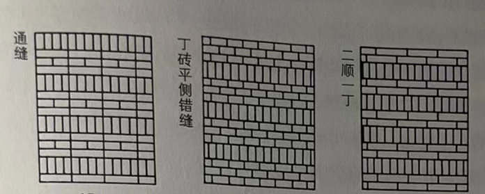砌砖墙时,首先要避免上下通缝。我国封建社会初期所见到的砖砌体多是单砖、单向、单面垒砌,但已经考虑到砌体的稳定,采取了上下错缝的方法。到汉代随着砖的规格趋向统一标准化,砌砖形式便发展到单砖多向多面及空斗等各种组合形式,其中有些形式为后代继承并沿用至今。