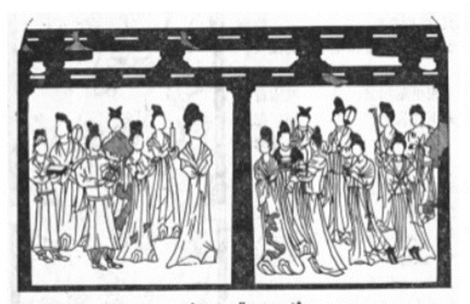 前室东壁壁画(图源《唐永泰公主墓发掘简报》,仅用于学习交流)
