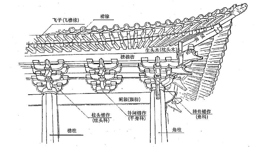 宋式斗栱托檐(图源《中国建筑史》,仅用于学习交流)
