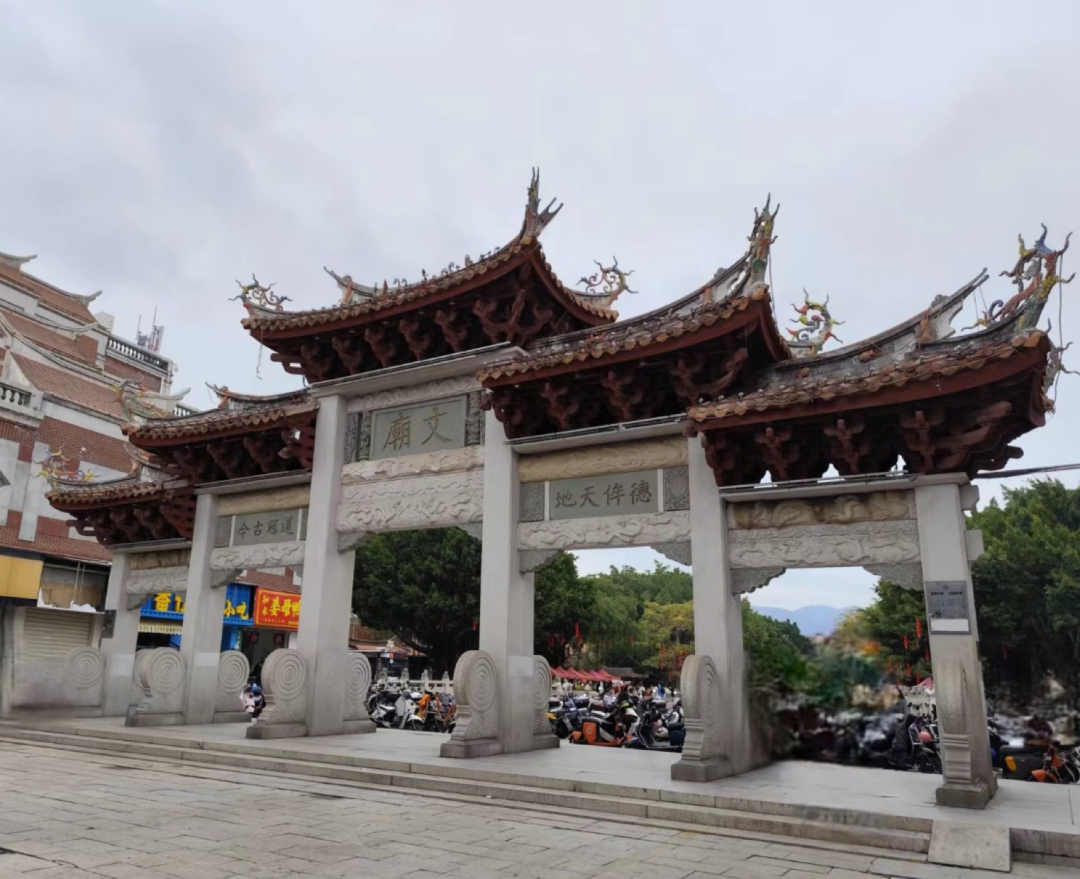 进入文庙外,最先看见牌坊,正中间有“文庙”二字,两边分别是“德侔天地”和“道冠古今”。