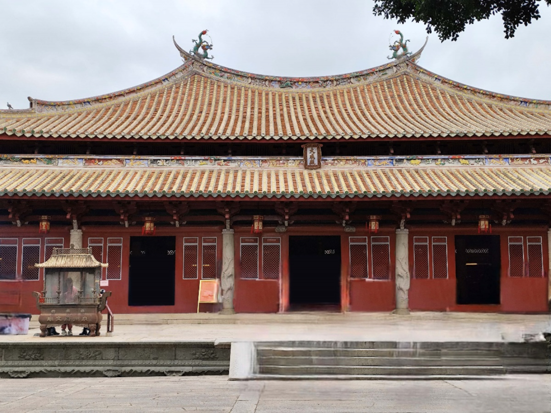 泉州,作为闽南文化代表之一,拥有着浓厚的海洋文化,宋元时代,海上经济迅速向外发展,北宋泉州设立了市舶司,之后泉州作为贸易大港,经济发展较快。也因此海洋文化在泉州建筑上有所展现,民居用红砖,有了独特的红砖文化,传统建筑中还运用了大量精巧的砖雕、木雕、泥雕,创作了非常生动绚丽的屋面形式。泉州府文庙便是将中原文化和闽南文化相结合的典型建筑之一。