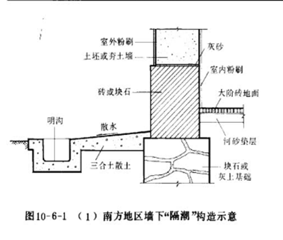 南方地区在墙下地面隔潮构造(图源《中国古代建筑技术史》,仅用于学习交流)