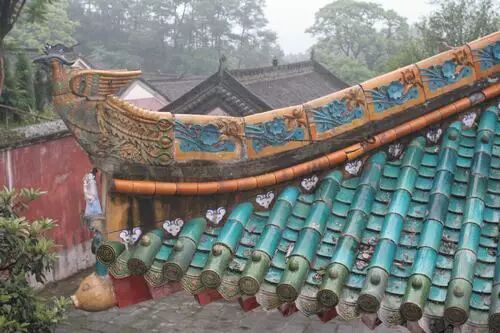 这样屋檐至角处就出现平缓的上翘(清代称为“起翘”)。这做法约始于南北朝后期。中国古代建筑翼角上翘的特点,至此形成。