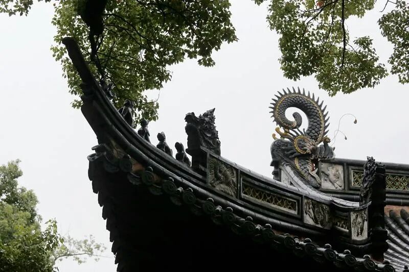 飞檐设计构图巧妙,造型优美的屋顶给人们以赏心悦目的艺术享受。飞翘的屋檐上往往雕刻避邪祈福灵兽,似麒麟,像飞鹤,有人喜欢灵兽,有人喜欢祥云,或是一条活蹦乱跳的鲤鱼,代表着临水而居的亲水文化。