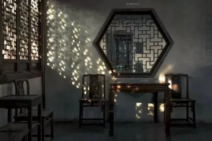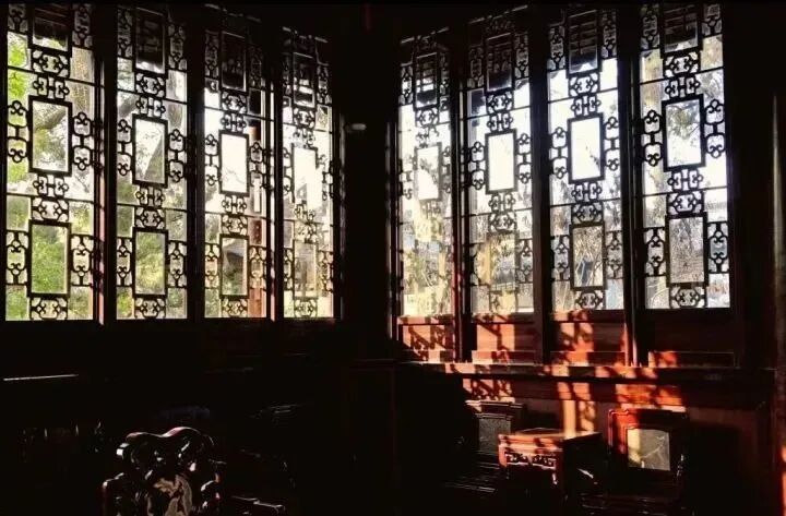 园林中雕花的窗户,是江南建筑里最为旖旎的风景。古人谓“浓绿锁窗闲院静,照人明月团团”,在云淡风轻之夏夜,想那半窗斜月,映着满园幽景,恰有笛声悠悠飘来,笛声含情,而闺中佳人抚琴以对,此情此景,又何似在人间。