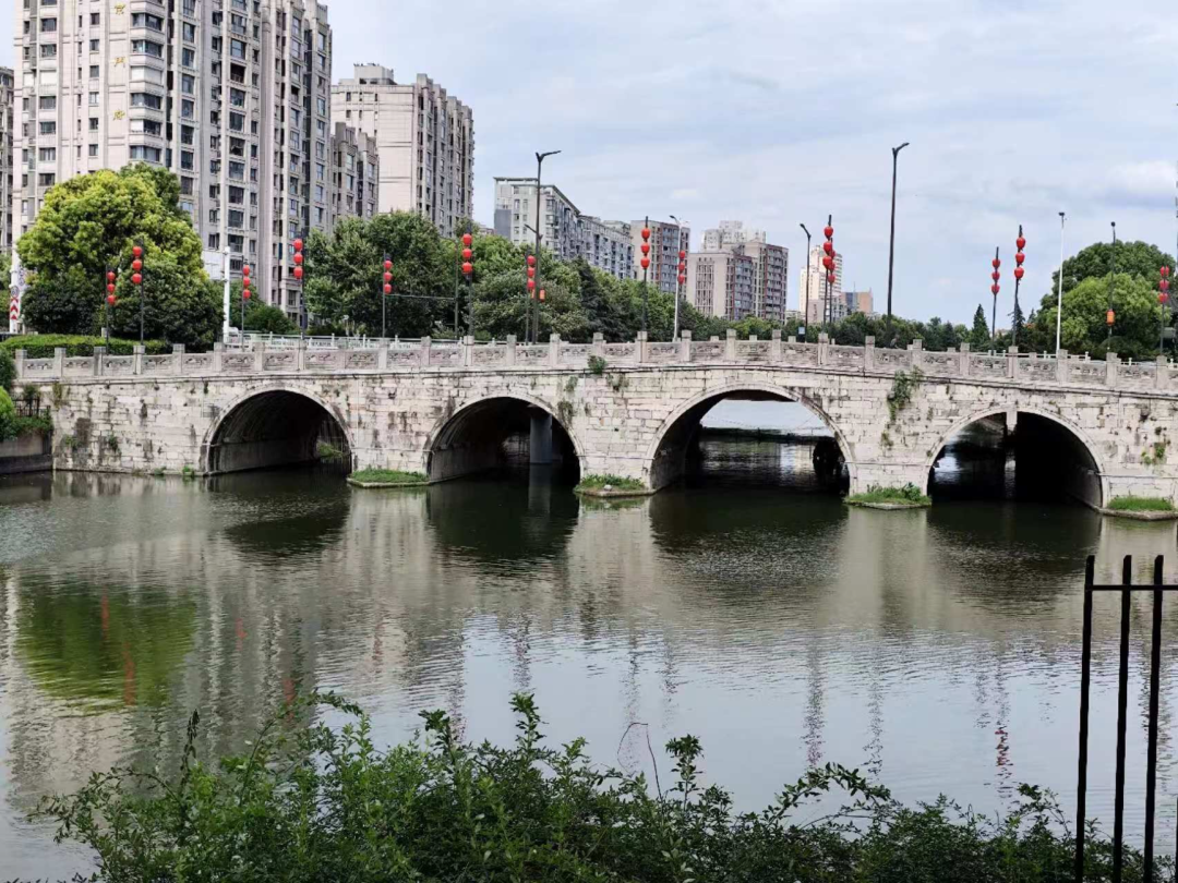 古桥便是指在城墙前,秦淮河上有古桥-古九龙桥,建于明朝初期,桥长84米,宽13米,古时是从通济门进行南京城的咽喉要道。明太祖朱元璋为了巩固明朝和繁荣明朝的经济,在从通济门进入南京城的要道上建造了一座桥,因其地处内、外秦淮河的交汇处,朱元璋为“锁”住大明朝的“风水”,给此桥起名为"九龙桥",希望以此永保大明朝的宏伟基业代代的相传下去。清朝时期,康熙、乾隆巡访江南时,均从九龙桥进入南京城。