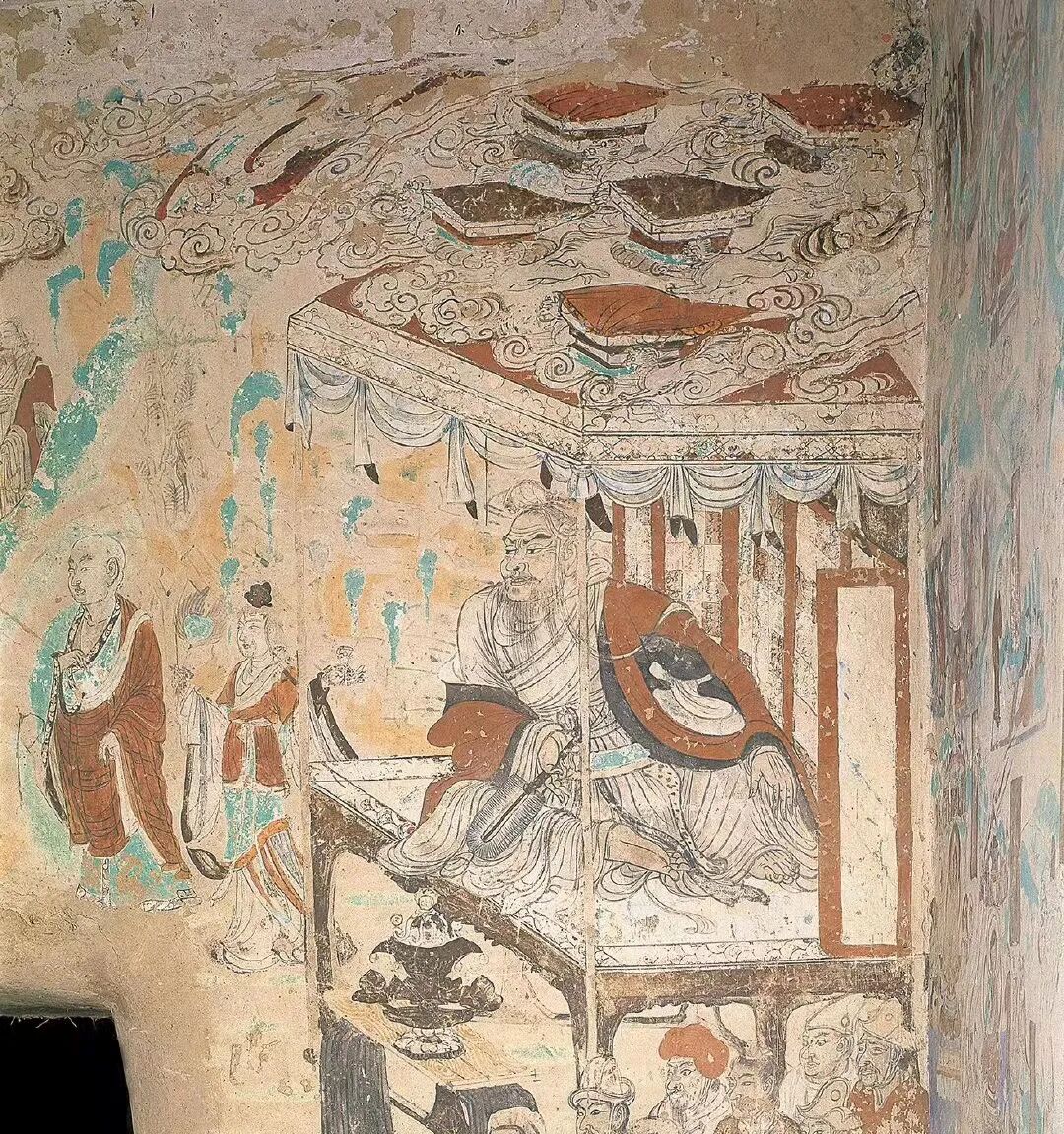 莫高窟第103窟 东壁 维摩诘像,维摩诘居士是著名的在家菩萨,在大乘佛法中的地位超过一般的菩萨和罗汉,又号金栗菩萨。