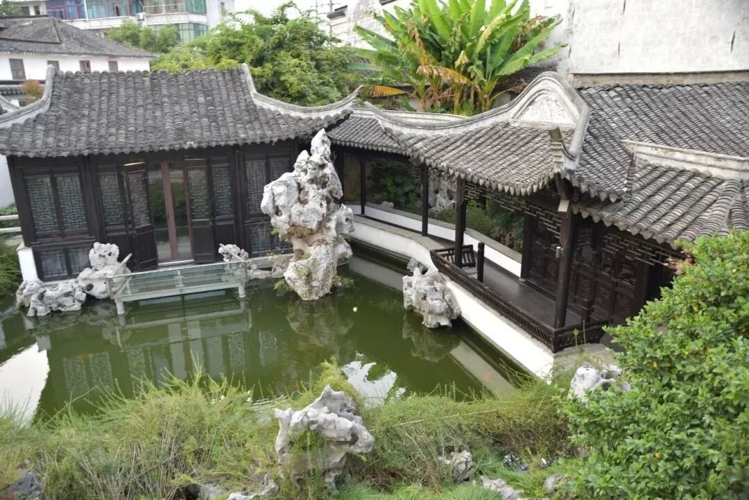 从仁昌顺走到禹迹桥,这一条368米的宝塔街,最有名的属师俭堂了。这是一座很有江南味道的古典庭院。师俭堂的各种古老雕刻很精美,门楼有砖刻,飞檐有木雕,裙板上还有漆雕,神话传说 、戏 剧故事融入了雕刻之中,形态生动。院内还有两道花瓶造型镂空的院墙 ,寓 意为“平平安安”。师俭堂共前后六进,有码头、商铺、花园,大大小小的房间共 100 多间。在第二进与第三进之间,还夹着一条宝塔街,街不宽,倒像是宅内的天井。