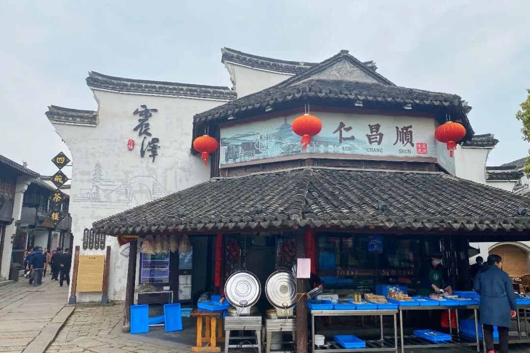 在震泽古镇入口处,宝塔街西首的苏州老字号“仁昌顺”,是震泽传统糕点食品的一个集大成者,还上过《舌尖上的中国》。