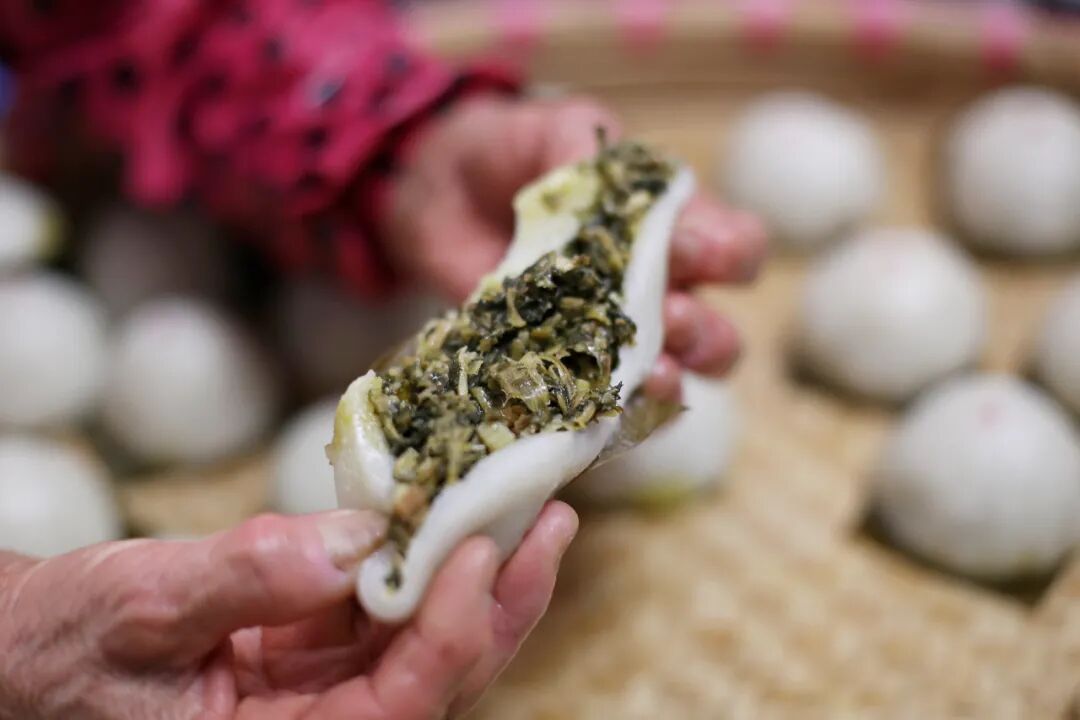 菜花头团子里面用的香青菜,太湖水浇灌,特有的味道。