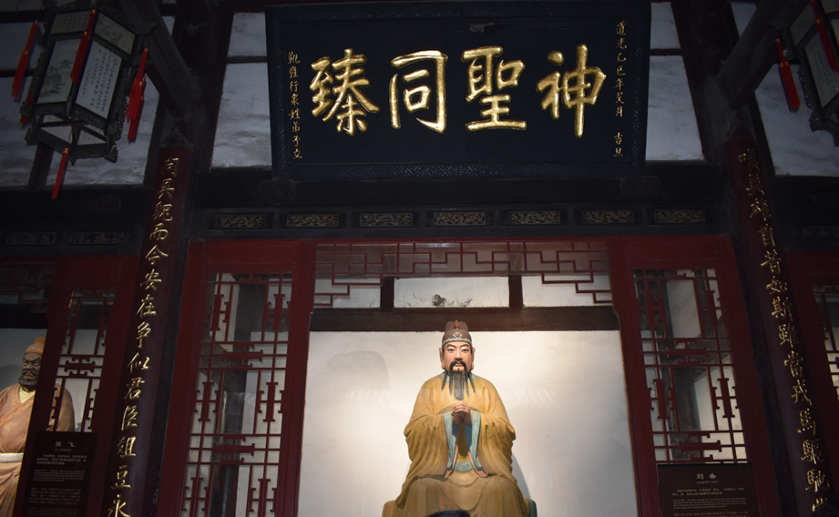 刘备殿前东西廊内,有蜀汉文臣武将的塑像28尊。