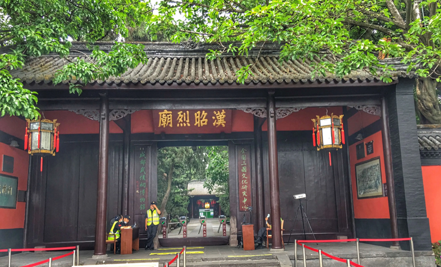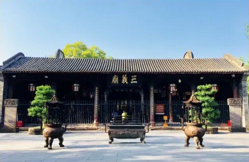 成都武侯祠由惠陵、汉昭烈庙、武侯祠、三义庙组成的三国历史遗迹区,川军抗战将领刘湘陵园为主体的西区和体现川西民风民俗的锦里民俗区三大部分组成,占地面积约15万平方米,是全国唯一一座纪念刘备、诸葛亮、关羽、张飞等蜀汉英雄的君臣合祀祠庙,也是全世界影响最大的三国遗迹博物馆。