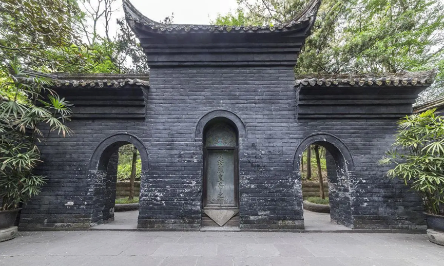 明洪武二十四年(1391年),明蜀献王朱椿主张“君臣宜一体”,废弃惠陵旁的武侯祠,重修汉昭烈庙,将诸葛亮的塑像塑入汉昭烈庙内,实现“一祠同祀君臣”的格局。此后,武侯祠这一名称不再专指纪念诸葛亮的祠堂,而是将惠陵、汉昭烈庙等区域囊括进来,统称“武侯祠”。清康熙十至十一年(1671~1672年),四川按察使宋可发主持重建武侯祠,形成了前(刘备殿)后(诸葛亮殿)两殿并立,前殿如朝廷礼、后殿如家庭礼的君臣合祀格局,直到今日。