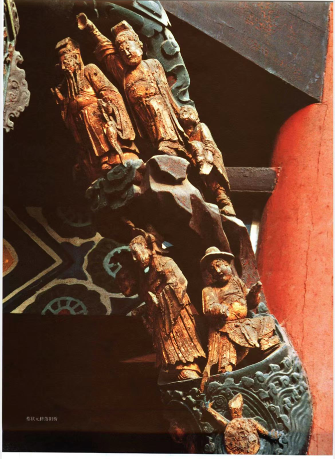 展。此二阁楼沿的栏板和檐下的衬枋上均有精美绝伦的木雕装饰,内容以戏曲故事为主,多为高浮雕,构图饱满,刀法多变,具有相当高的艺术水平。