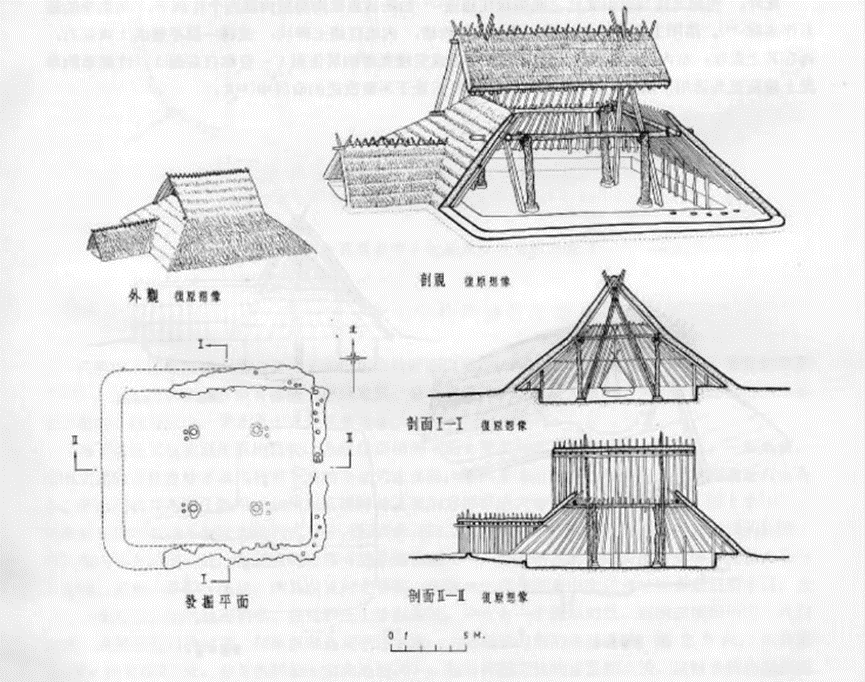 从发展看,经过了一柱、四柱、无柱的探索,晚期方屋似乎找到了较为合适的二柱方式,屋架基本上以大叉手的结构方式为主,这一方式尔后一直为商周奴隶主宫殿所沿用。