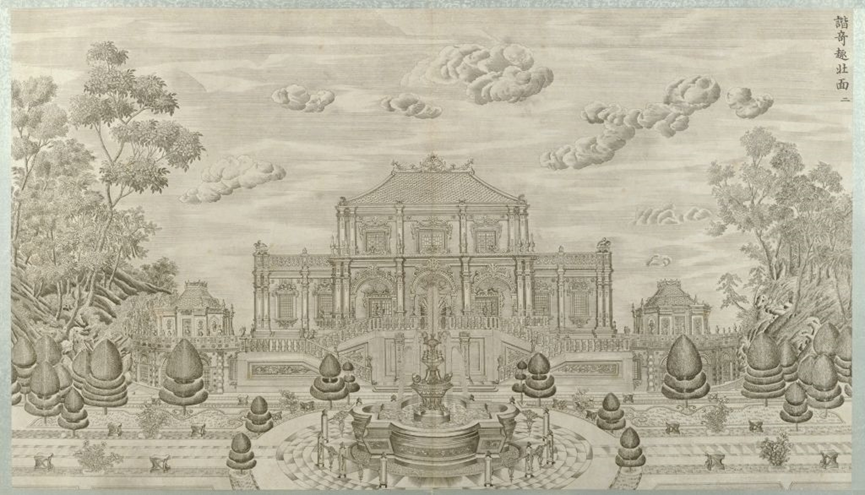 虽然郎世宁在圆明园的这些创作由于兵燹的劫难早已湮没无存,但从此册铜版组画中,我们仍然可以看到郎世宁等西洋宫廷画家在宫廷建筑绘画上的高超造诣与成就。这组完全西式的铜版组画也成为清代宫廷建筑绘画全新技法的代表作。