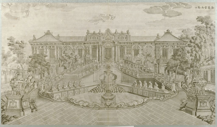 清雍正二年(1724年),雍正皇帝决定扩建康熙年间即已开始兴建的圆明园。在雍正、乾隆两朝持续不断的大规模扩建中,通晓西洋建筑学的郎世宁曾与法国传教士蒋友仁、王致诚等一起参与园内著名的“西洋楼”的设计和工程督造,并有机会在较长的时间里住在这座东方名园内,为装饰殿堂画了多幅作品,其中既有欧洲风格的油画,也有以欧洲焦点透视法在平面上表现深远效果的“线法画”。