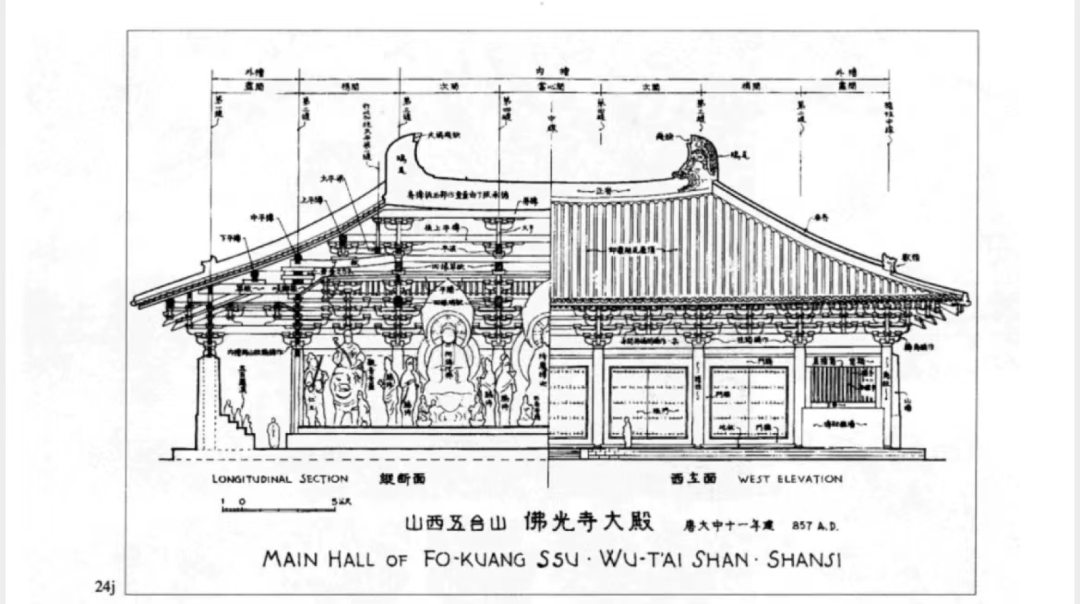 梁思成先生手稿画的佛光寺大殿(图源《图像中国建筑史》,仅用于学习交流介绍)