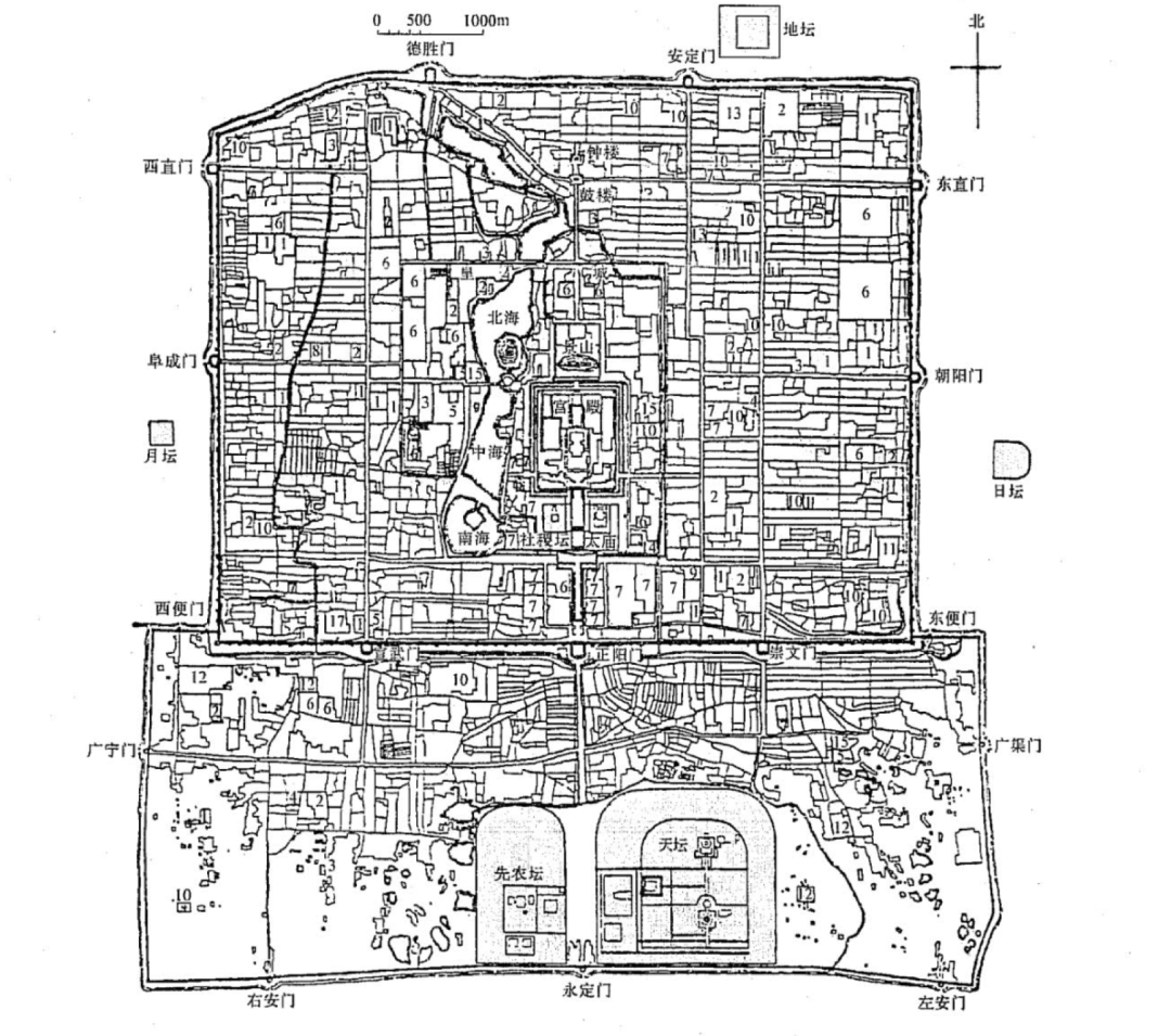 明清北京主要坛庙分布图(图源《中国建筑史》,仅用于学习交流)