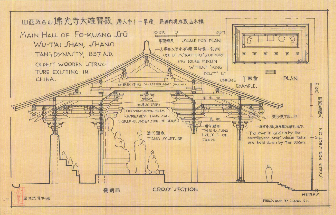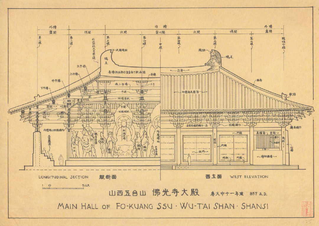 山西佛光寺大殿详解图(图源梁思成先生手稿,仅用于学习交流)