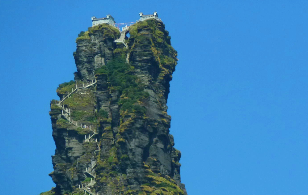 梵净山金顶,是武陵山脉的最高峰,远眺金顶,恰似农家蒸饭用的甑子,又像云海中高高耸起的一只巨大的惊叹号,奇险无比。