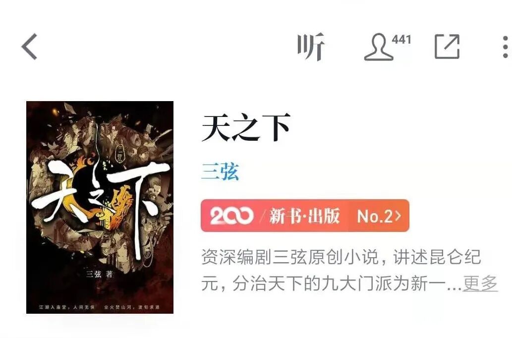 《天之下》上架微信读书app仅1天