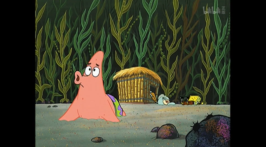 静坐中的海绵宝宝和派大星不久之后就受到了空投援助