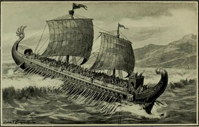 忒修斯与雅典的年轻人们自克里特岛归还时所搭的30桨船被雅典的人留下来做为纪念碑