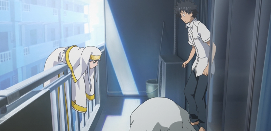 而某天早上,在宿舍阳台上他遇见了一位自称名叫禁书目录(Index)的纯白修女(左)