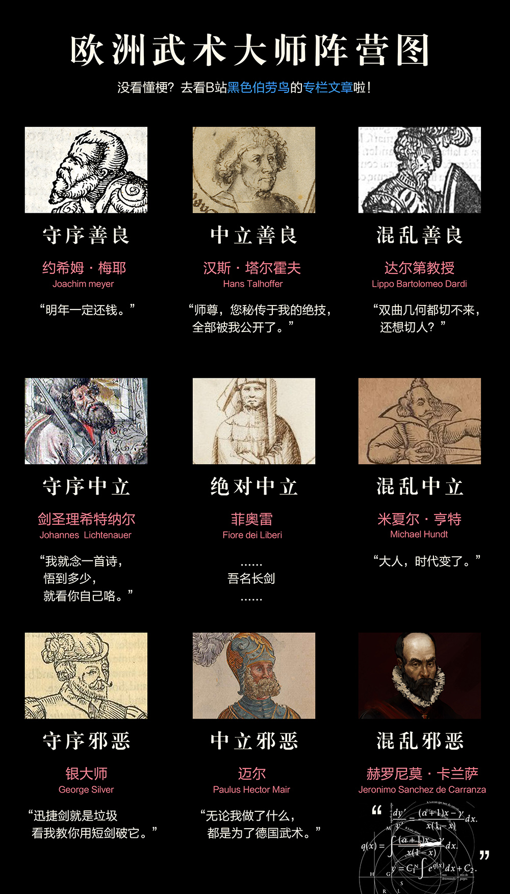 制作的一张欧洲武术大师的阵营九宫格图