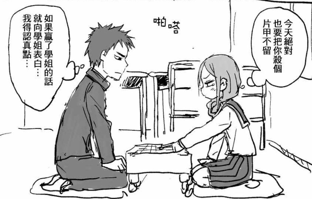 故事讲述了将棋初学者・田中步(左)与部长・八乙女漆(右),棋力程度相差悬殊的恋爱喜剧故事