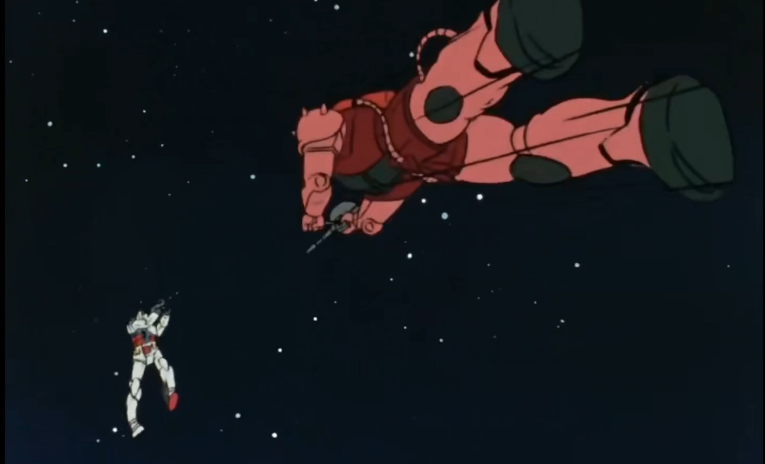 夏亚驾驶着MS-06S 夏亚专用扎古II和下属史林德驾驶的扎古I前去执行破坏联邦军制造的新型MS——RX-78-2高达的指令