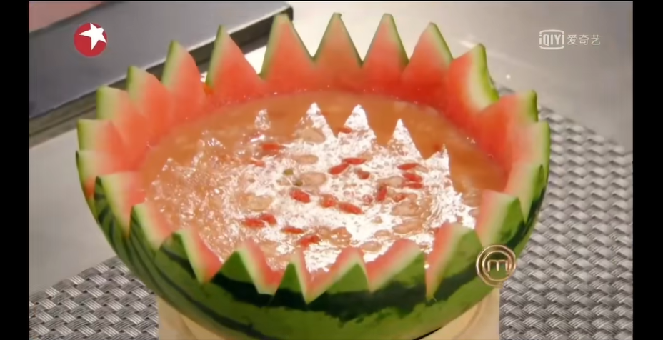 评委们只试吃了最好的三道菜(看起来),并没有吃西瓜羹
