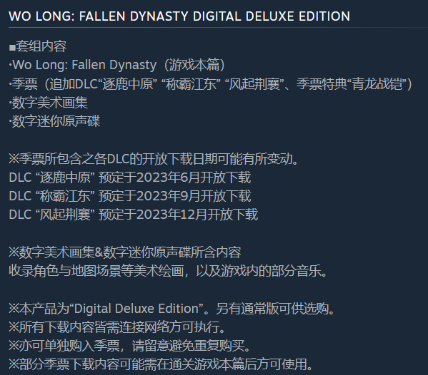 数字版预购特典为:《卧龙:苍天陨落》 朱雀战铠套装(实体版不包含)