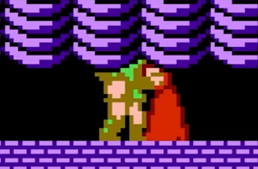 这是林克的首次登场,其一身绿衣,戴着绿帽,手持长剑及盾牌的形象被确立