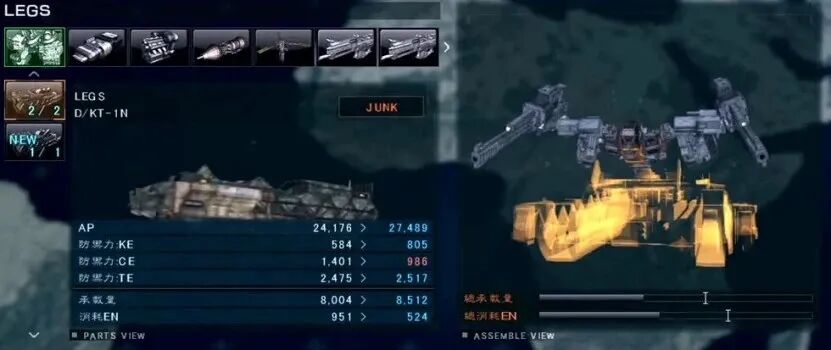 (AC4更加入了机体前后左右平衡的重量零件)